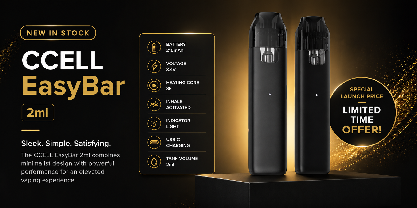 Moderní a přitom jednoduchá prémiová baterie Rizo od CCELLu. Duální nastavení ohřevu a dobíjení přes USB-C zaručí maximální možný požitek z vapování!